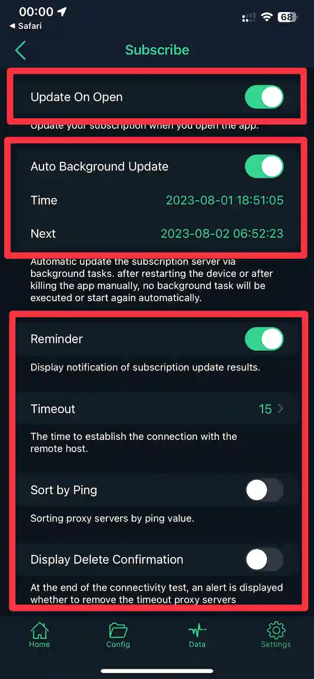 3. In the URL field, paste your previously copied link (Subscription URL)
