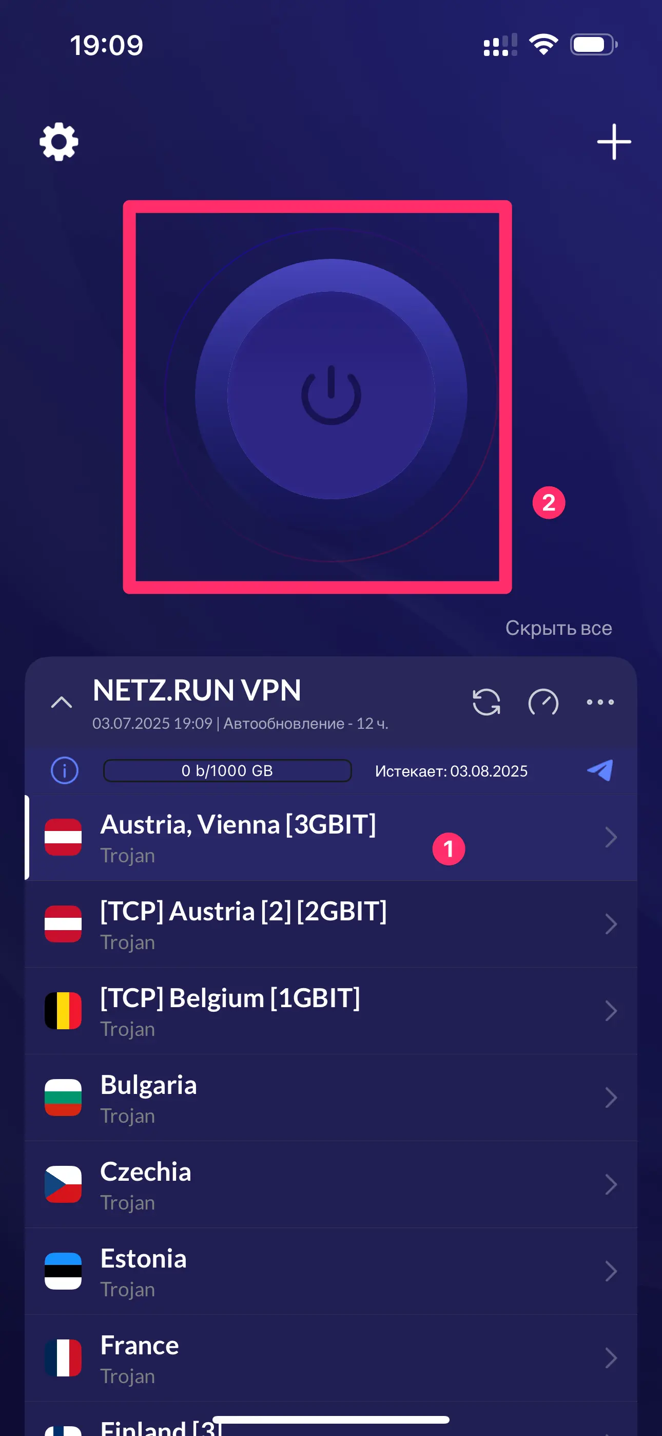 - Чтобы отключить VPN, нажмите на кнопку "Паузы".