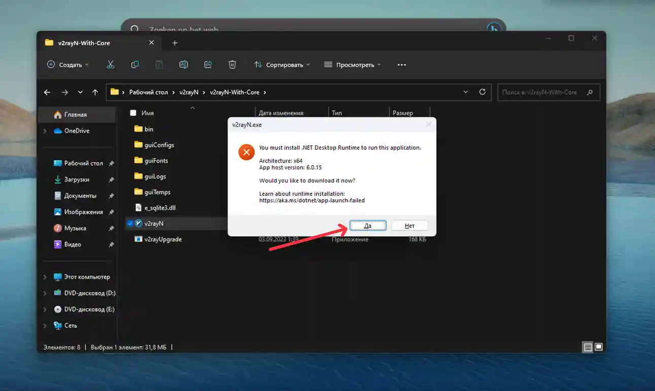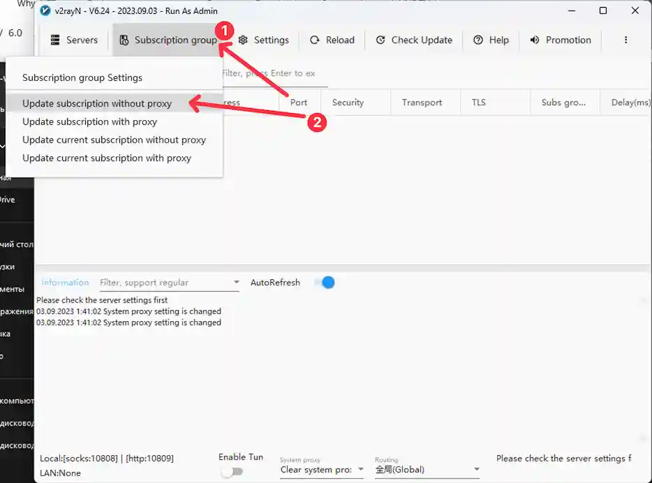 После этого попробуйте запустить v2rayN.exe заного от имени администратора.